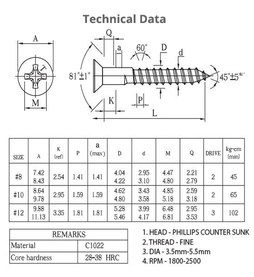 Sold outSELF TAPPING CSK HEAD NP